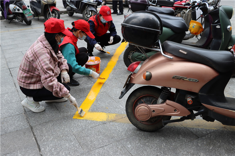 在開(kāi)展“我為群眾辦實(shí)事”志愿服務(wù)進(jìn)社區(qū)活動(dòng)中,黨員們根據(jù)香桃社區(qū)的服務(wù)需求,為河西桃花源小區(qū)劃定小轎車、摩托車停車線,幫助居民規(guī)范停車秩序,滿足群眾停車需要,保障群眾出行安全,黨員們的暖心行動(dòng)得到居民的點(diǎn)贊和好評(píng)。