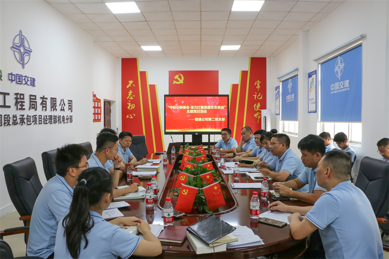 盛夏酷暑,驕陽似火。平南路機電項目施工如火如荼,正全力沖刺保通車任務(wù)。7月30日,智通公司第二黨支部到平南路機電項目開展“守初心擔(dān)使命 奮力打贏保通車攻堅戰(zhàn) ”主題黨日活動,推進(jìn)黨建文化進(jìn)項目,充分發(fā)揮“交投先鋒+機電項目攻堅突破”團隊先鋒和尖刀兵作用,凝聚力量、提振士氣,確保順利完成工程項目建設(shè)目標(biāo)和“保通車”任務(wù),全力打造廉潔工程、安全工程和品質(zhì)工程。機械院黨委書記、董事長王吉才以智通公司第二黨支部普通黨員的身份參加活動。