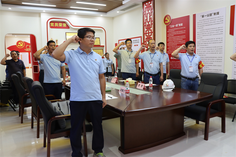 “我志愿加入中國共產(chǎn)黨,擁護(hù)黨的綱領(lǐng),遵守黨的章程……”活動在重溫入黨誓詞中拉開序幕,全體黨員同志有序列隊肅立,右手握拳,面對黨旗莊嚴(yán)宣誓,以鏗鏘有力的宣誓聲表達(dá)著永遠(yuǎn)忠于黨、永遠(yuǎn)跟黨走和為共產(chǎn)主義事業(yè)奮斗終身的決心。隨后,大家共同為第三季度入黨的同志過黨員政治生日,進(jìn)一步增強(qiáng)黨員的榮譽(yù)感和責(zé)任感。