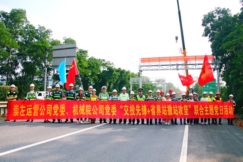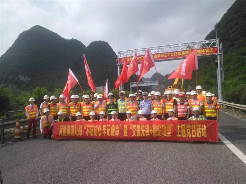 為慶祝門架工程順利完工,展現(xiàn)“不忘初心、牢記使命”主題教育成果,進一步發(fā)揚黨員群眾守初心、擔使命、高揚旗幟、再創(chuàng)佳績的奮斗精神,機械院公司黨委聯(lián)合柳州公司黨委組織開展“交投先鋒+攻堅突破”主題黨日活動暨龍門架吊裝完工儀式,柳州運營公司、廣西交科院、交警、路政、監(jiān)理等有關(guān)單位20余人參加活動。