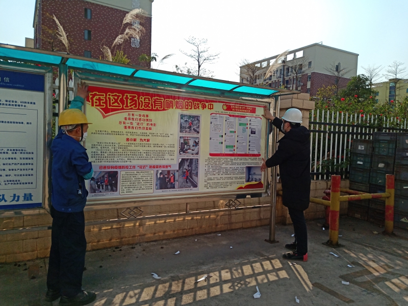 加大宣傳力度,豐富宣傳方式和內(nèi)容,營(yíng)造疫情防控的濃厚氛圍。在原宣傳櫥窗、板報(bào)專(zhuān)欄、標(biāo)語(yǔ)橫幅宣傳基礎(chǔ)上,增加了LED顯示屏滾動(dòng)播放重要提示、海報(bào)、掛圖、漫畫(huà)、先進(jìn)典型人物宣傳、懸掛條幅、發(fā)放承諾書(shū)、溫馨提示卡發(fā)至班組、員工等多種形式加大宣傳力度,擴(kuò)大宣傳覆蓋面。截至目前,累計(jì)懸掛宣傳條幅23條,宣傳海報(bào)35張,發(fā)放情況調(diào)查表150份,承諾書(shū)150份,溫馨提示卡80張,內(nèi)容涵蓋自治區(qū)疫情防控指揮部關(guān)于疫情防控的“八個(gè)堅(jiān)持八個(gè)嚴(yán)禁”、“十項(xiàng)措施”,柳州市政府企業(yè)復(fù)工復(fù)產(chǎn)“十大措施”等上級(jí)規(guī)定要求,以及新冠肺炎防護(hù)知識(shí)、“七步洗手法”、如何正確佩戴口罩、正確消毒等防控知識(shí)和自我防護(hù)辦法等,通過(guò)宣傳引導(dǎo),不斷增強(qiáng)全員防控意識(shí),使防控意識(shí)和防控知識(shí)入腦入心。