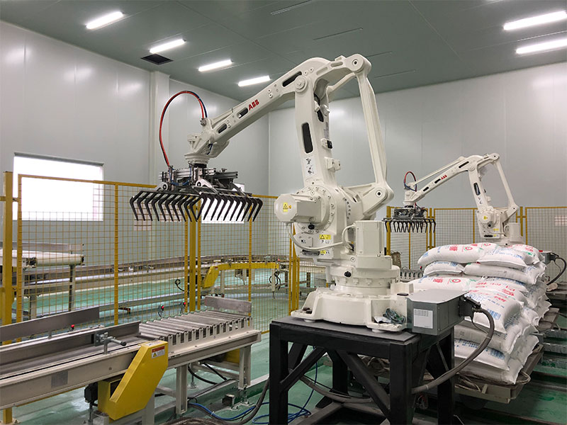糖廠使用碼垛機器人生產(chǎn)線現(xiàn)場