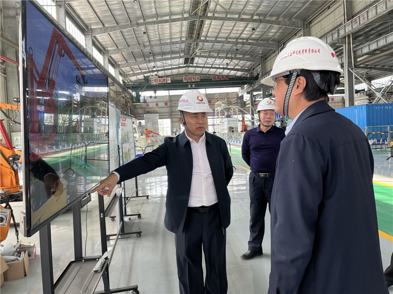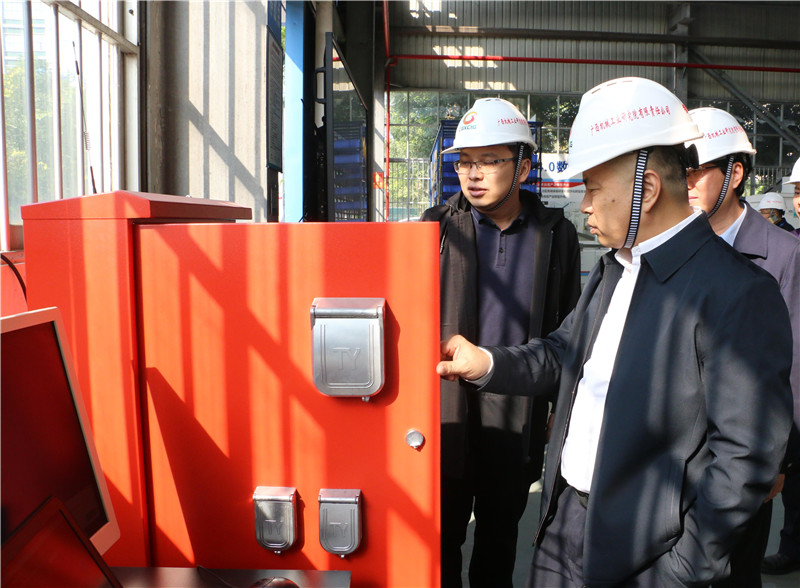 白雷部長參觀公司展廳,到智能制造車間檢查指導(dǎo)安全生產(chǎn)工作,了解機械院自主研發(fā)的智慧電箱、綠籬修剪機器人、全自動錐桶擺放機器人等產(chǎn)品