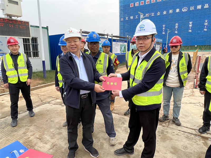 封頂儀式結(jié)束后,機(jī)械院黨委副書記、董事、總經(jīng)理許國平,機(jī)械院副總經(jīng)理李耕現(xiàn)場慰問了項目部工人代表,與施工、監(jiān)理等單位代表進(jìn)行了座談。