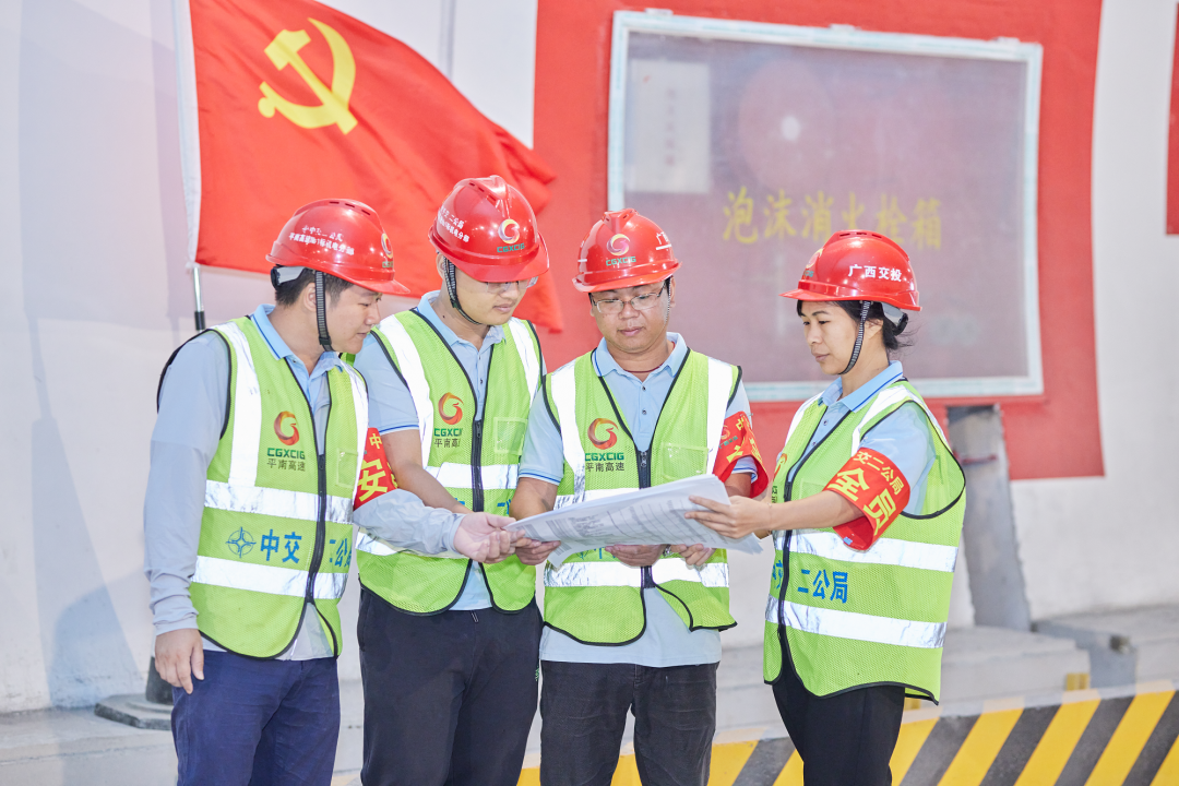 在機(jī)電、交安等建設(shè)項(xiàng)目工地上,鮮艷的黨旗迎風(fēng)飄揚(yáng),紅色動力強(qiáng)勁涌動。